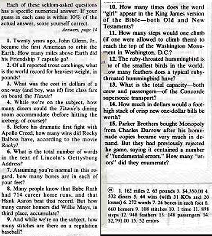 These quizzes are scans of newspaper clipping put in a scrap book a very long time ago so the quality is poor.
