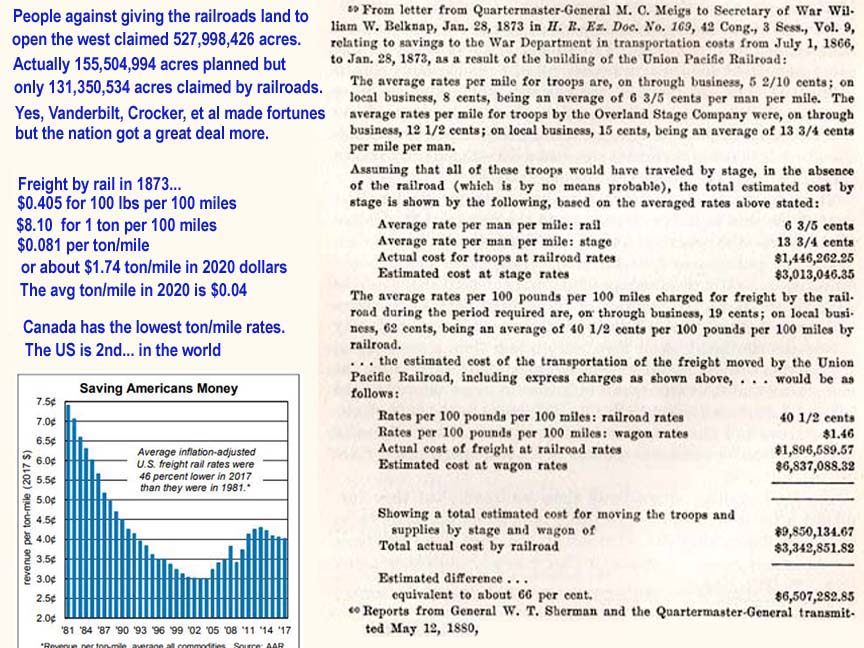 assume was the Mississippi Valley Historical review. They were for some reason investigating how text books handled the land grants by the government to the railroads. Attachment 70433 So I says to myself, self says I, WTF? This was published in September of 1945. I don't know how long it took but there's a war on, you know the Big One, WW II, don't you have more important things to think about? OK, on the first page a footnote by the author... Attachment 70434 Hmm, his associates in the Association of American Railroads. Ah, the railroad boys doing some positive PR, eh? I don't remember any of my book learnin' dwelling on it but I've always felt the vast stretches between the Mississippi River and the other side of the Rockies was not of much use because it was hard to get there and once there completely isolated. There was the danger of these areas breaking or being stolen away. So the government gave the railroads land for right of ways plus land to built stations and land to sell around that land. The railroad robber barons made vast fortunes but to be fair they Bison saying the herds blocked the trains when in fact the were starving the Indians out. However they did open the west to immigrants hungry for land of their own and tied the country together. So I figured it's a wash besides it was long ago and what's done is done. Over the 23 pages they compare the story as presented in 37 different textbooks compared to verifiable records of the transactions. The textbooks are all over the place on facts often contradicting each other and even themselves. I guess in colleges the use whatever book was written by the dude teaching the course. Like I said before it's over and done but I thought they did make one case pretty well. After the Civil War it was time to tie the country together so there wouldn't be another one. For the government to assert their authority over the wilderness if you will. That meat Federal Troops moved all over the place and the railroad was a big help. Attachment 70435 It doesn't look very impressive but this rabbit hole kept me going around in circles and loved me long time. :blush: |