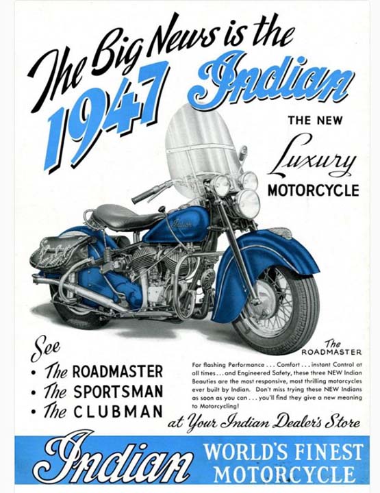 That's much cheaper then providing 3 squares and a cot for years. Attachment 71176 1933 sank a lot of businesses. This tire dealer got his own campaign going on. They may not buy from him but they'll sure as hell know who he is. Attachment 71177 Now this looks like a typical post war Indian motocycle ad but it's wrong. Indian was alway Motocycle, never ever Motorcycle. Attachment 71178 Compared to this French ad from 1952 showing a guy dressed like an accountant or lawyer shuffling veggies on a trike. Attachment 71179 |