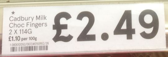I'm pretty sure that I've mentioned this before but it's a continual irritation. Looking for a packet of chocolate biscuits for Dad, (yes REALLY) I homed in on Chocolate Fingers available in two sizes. That's the packs, not the fingers. Ah! Economies of scale was the unspoken message. Except that it was cheaper to buy two small packs than one large one. See for yourself: A cursory inspection of the shelf labels is all it took in this instance, but I have stumbled across other items available in different sizes where it isn't at all apparent which is the best value. Doing a bit of hunter gathering in Tesco should be simpler than that. Quote: