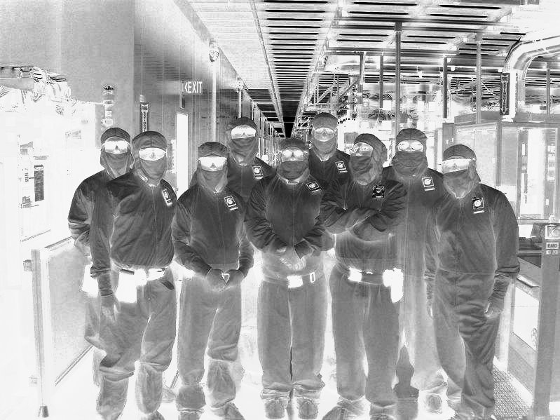 It's the opposite of what the commercials show. There are no disco lights. There is no dancing. There are no neon-colored suits. Just a noisy factory floor and everyone's face is covered.