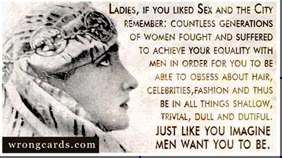 I have a cousin who seems to have modeled her life on S&tC. She even had a wedding that one of my other cousins said was like it just came straight out of the movie. She's got some funny idea about a trip she's planned to Europe. She thinks a French boutique is going to hire an Australian...and pay her enough to live on. I think she's got rocks in her head.