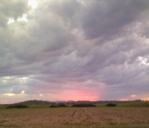 I saw the strangest sunset the other evening on my way home. Here are a couple shots of it, taken a couple minutes apart. The Close Encounters column appears to be emanating from a peak in the Olympics called The Brothers.