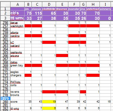 Like I said, picking the Browns is like throwing Cellar bucks in the trash! ![]() edit: I didn't get a red mark on your chart for missing NE/Ind...you may have already taken that into account, but just wanted to mention it.