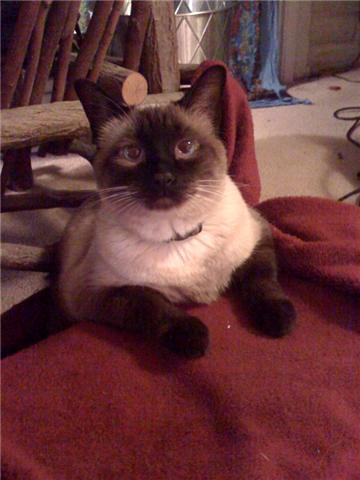Joe & Ali - you have lovely cats. I'll try to get Mum to take a pic of Diz in his relaxed baby pose in my arms, but to be honest, he is such an attention whore that he won't chill out when there is movement around him. What I need is a motion sensitive, night vision camera. Oh and make it semi-X-ray as well (I'm making it up, I can have what I want!) Because he is at his cutest in the early mornings. This morning I woke up to find one paw on my cheek. He was lying as if he had his arms around me, but being a small cat and me having a big fat face he only got one paw up. His back legs were against my upper chest and his head was on the pillow. This is mostly because I lost the lead to the heated pad he used to have in his cat bed In truth he could snuggle down in the airing cupboard or on the storage heater - but Singas are people cats, so he settles down with me.Because I was up early - for me (signing on day) - I left him asleep while I ate and showered. When I came back into the bedroom he was in the same position - covered up with the duvet, head in the pillow - so cute I was tempted to get back into bed. I didn't of course. Anyway, back to pictures - I will supply one sometime soon. |