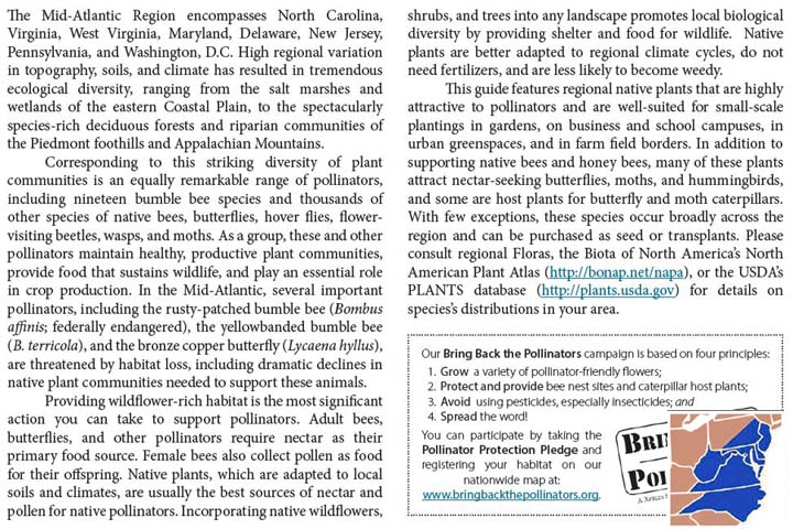 If you're planting flowers or shrubs why not plant what's good for the pollinators in your hood. If you are not planning on planting... get your ass out there and plant anyway! You must know where there's a vacant lot or idle land where you can stick them. Even in pots if you want but that means keeping a close watch on them so they don't die of thirst. This information is for Mid-Atlantic, NC, VA, WV, DC, MD, DE, NJ, and half of PA. The other half of PA is in the region that goes out to MN. This is just a sample, but no matter where you live the Xerces Society at https://xerces.org/ will give you the straight poop. Do it for your honey.