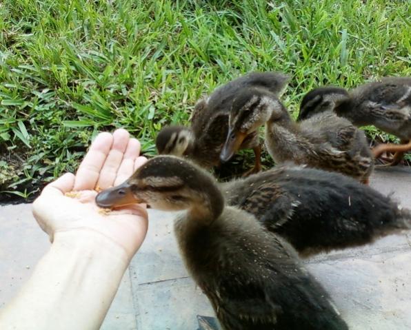 These little guys were rooting around my patio (during my stay at the Polynesian in Disney World), so I came out to get a better look and they were  tame enough to eat out of my hand.  However, when I tried to touch them or pick them up, Mama would fly at me - actually hit me in the chest.   The pics were taken with my cell phone.