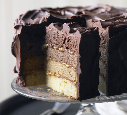 I don't think my version will bear close scrutiny. Something weird happened with the vanilla and the caramel layers, they cooked at the outside but not in the middle (oven too hot?) so they were a bit shrunken and came away from the tin at the sides. I was also a little haphazard in the splitting of the batter, which can't have helped. Still, I'll take a pic of it iced and sliced. And no, I am not making it again, unless I am begged on bended knee. The caramel in between the laters is uber-sweet and I can't believe anyone will really enjoy it. I thought carrot cake was a faff, but at least I could eat a slice of it. And from beginning to end it took 4 hours. Okay most of that was baking and cooling as opposed to work, but only have 2 sandwich tins of the right size meant a lot of waiting around. And having Diz creaking at me from outside the kitchen.