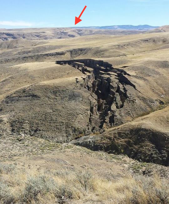Maybe a coincidence, but off in the distance it looks like continuation of a fault line.