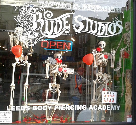 Then off to the bus stop. The skellies were as surprised as I was to note that Valentine's Day is coming round again, and none of us have managed to find any body to love... Oh, FTR I'm at my parents' on the 14th, so don't send all my flowers and cards to Otley