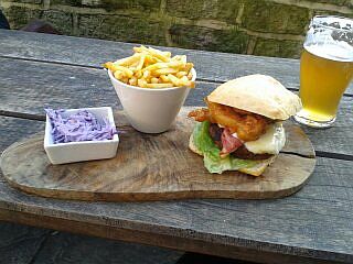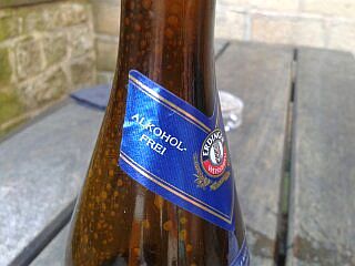 As I was tired of drinking fizzy pop I asked if the bar had any alcohol free wine or beer. I felt like a proper grown up sitting outside in the sunshine with a big meaty burger and a beer, rather than slurping down de-caff tea and a stale cake.