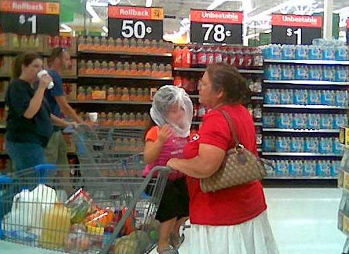 Two people appear to be drinking in the supermarket. Have they no manners at all? WTF?