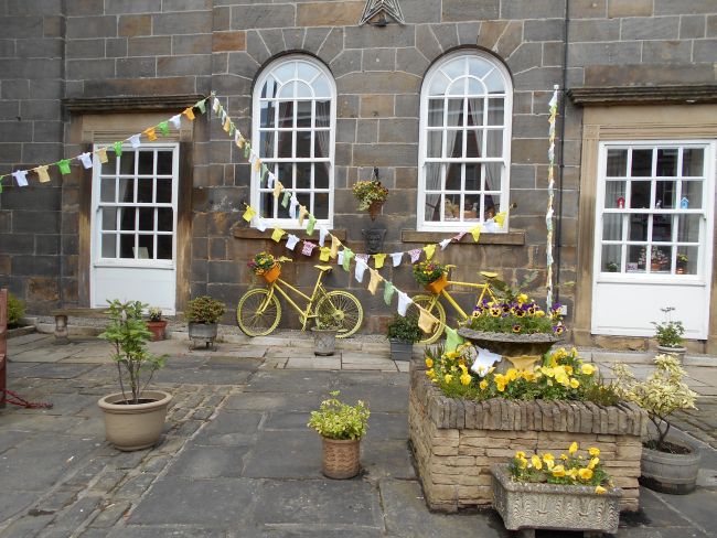Anyway, pretty much every business in town has formed a link to the Tour, window painting and bunting being the most popular. Here are some photos of Tour specific shop windows, and also some general shots of shops, courtyards, alleyways etc. It's a great place for small independents. Oh don't be fooled by the weather. If you check the date stamps you'll see I was skipping about down in a very short space of time before it started raining again ![]() I can see both of these from my front room window: A complex of retirement flats. An art gallery which is one of the few eschewing the yellow jersey motif, going instead with the polka dots of the King of the Mountains.