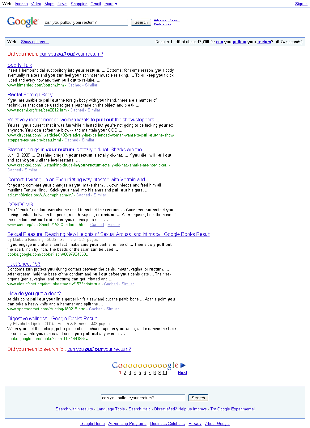 Tawny Monday Jul 6 06:17 PM I had a patient once who used to pull out her own rectum. capnhowdy Monday Jul 6 09:46 PM monster Tuesday Jul 7 12:53 AM I am a married woman and therefore not interested in your pink cucumber. kthnxbai. Sun_Sparkz Wednesday Jul 8 08:39 AM Yeah, Tawny, umm.. WTF?!?!?!? kerosene Wednesday Jul 8 11:34 PMI thought it looked a lot like a floating, impregnated, uterus with a big pink ribbon on front..maybe this is some kind of Japanese gift? I mean, look at the background? ZenGum Thursday Jul 9 12:06 AM If it were Japanese, it would have more Hello Kitty crap on it. Clodfobble Thursday Jul 9 12:51 PM Or it would have printed across the front, "Cucumbering Joy For the Happy Existence!"