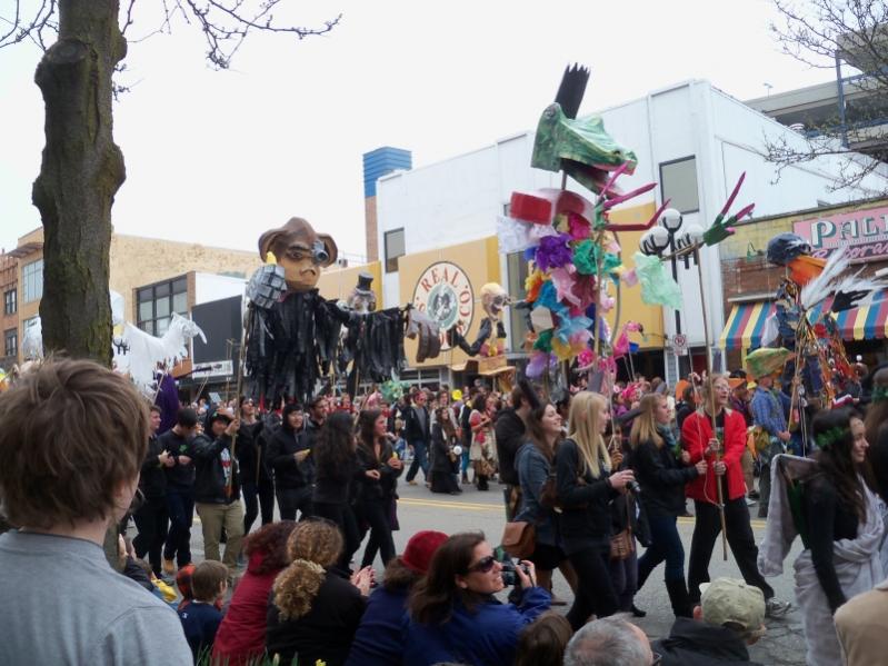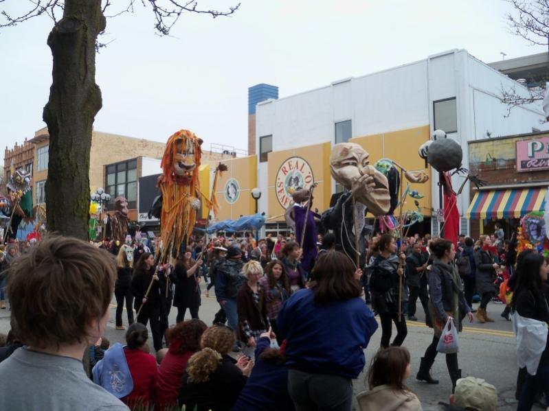 Here in Ann Arbor, on the first Sunday in April, we have Festifools. A parade of papier mache puppets made by the University of Michigan students and the community at large. It's been going for 6 years, shameful to admit this was our first attendance. The puppets were most excellent, the atmoshpere was fun and friendly and it was really nice to celebrate a close relationship between the townies and the students.