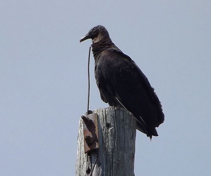 I immediately thought about my 19 yo cat, Slick. But, I also thought to grab my camera. I get out back and there on a power pole, is a buzzard. I tripped over my cat (alive) stepping off the patio. Then, while editing and resizing the photo of Buzz... ...I saved over the original image.:eek: Took me an hour to get it back.:mad2: Anywho, Cellar, meet Buzz: Attachment 48595 75-100 feet away, ~50 feet up, full telephoto, handheld, no image stabilization ETA: Spoke too soon. Taint no buzzard. Methinks it's an American Black Vulture. |