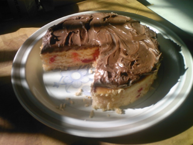 Yesterday I made cherry cake and shortbread biscuits (cookies). |