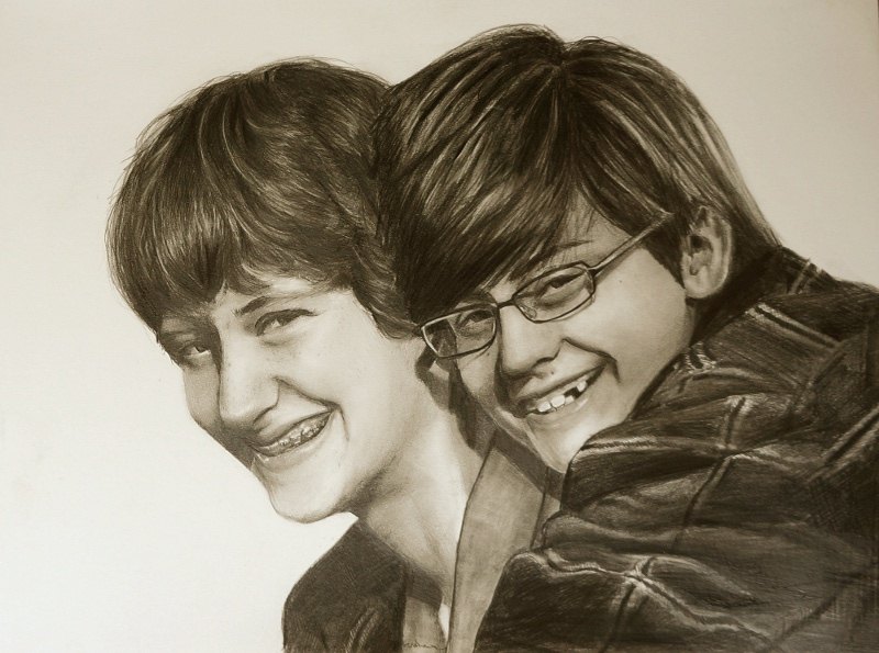 Look what kerosene drew for me on commission! I haven't seen it in person yet, but I'm excited to. It's going to be a Christmas present for my wife. In case it's not obvious, those are my kids. I took a million pictures on Thanksgiving, and chose my favorite three, all in different lighting, and kerosene told me which one would work best from her point of view and she drew it.