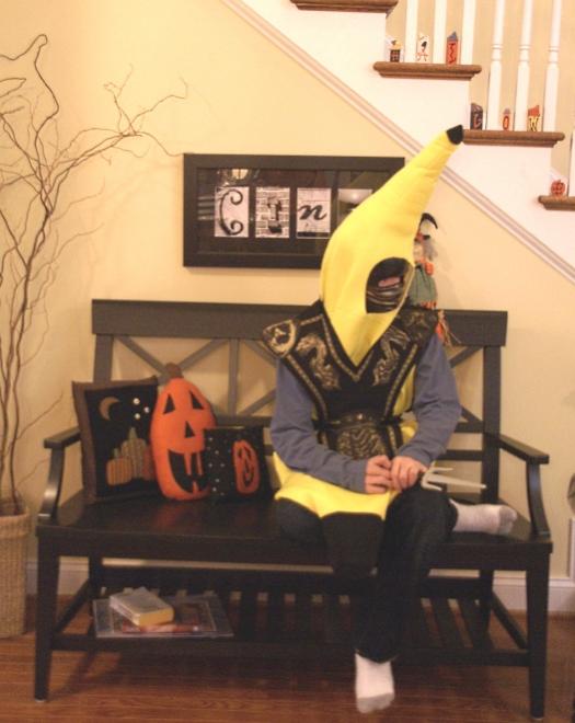 Ninja banana??? Kid, that's two years worth of costumes you're using up there. :lol: