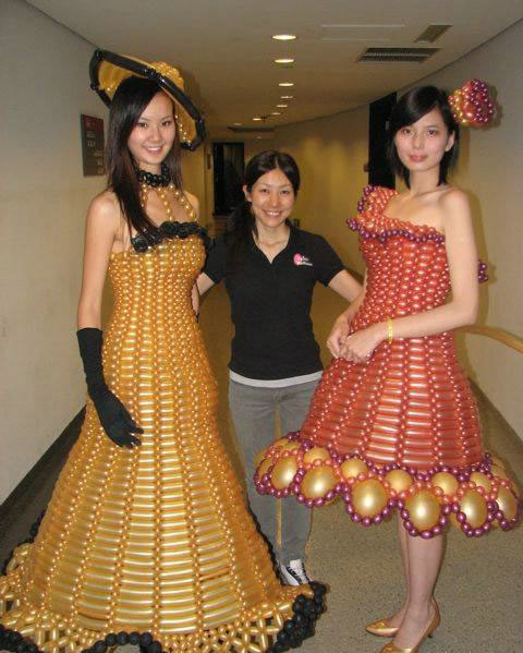 The balloon dresses are SO AWESOME. I can do some minor balloon animals, but I hadn't dreamed of anything that cool...I might have to order some balloons and take a crack at it! lol