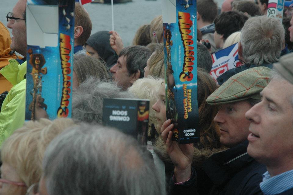 Maybe you've heard about the big anniversary for the Queen, celebrating 60 years on the throne. They had a big boat parade through London and a lot of people turned out to watch. You'll see nice pictures on news sites of the Queen and the boats, but what's it really like to be there? It's like this. Picture taken by my friend's daughter while she was up on his shoulders. You get a free periscope advertising an upcoming movie so you can catch a glimpse of the boats going by. Looks like a zoo but everyone is enjoying themselves and glad to be there. Attachment 38943 |
