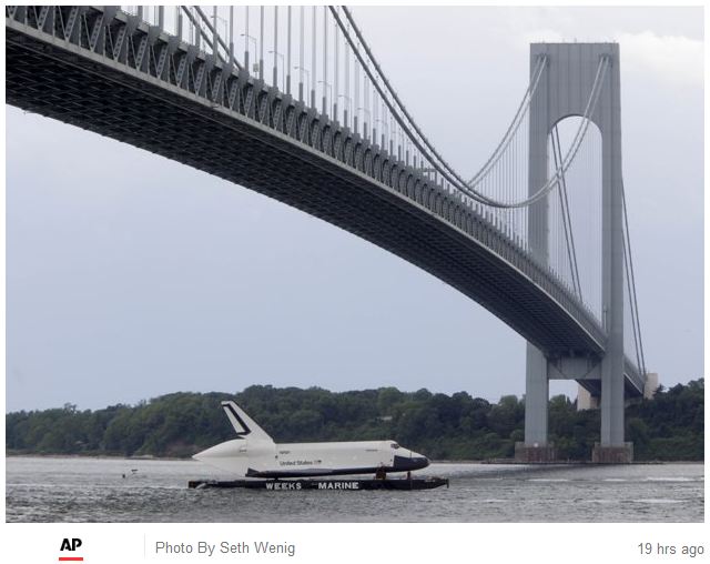 The shuttle Enterprise passing under the Verrazano Narrows bridge. Attachment 38947 And something you'll likely never see again. |