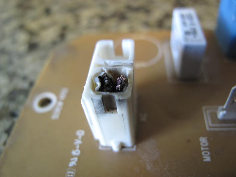 This is done. Here's the pc board showing the failed connector. Attachment 38162 A close up of the place where the wire overheated and melted. Attachment 38163 This is the male side of the connector. Both wires look black at the end, but one started out white. Attachment 38164 I couldn't find a Molex connector that matched my situation, so I made do with two separate connectors, each half occupied. I renewed the end of the existing wires with this segment of red and black wire, attached some suitable ends for the connector on the pc board and put it all back together. Attachment 38165 Sadly, I had two screws left over. Probably the ones that secure the adapter plate ffs. Now I have to take it all apart again. :facepalm: But it *DOES WORK*, I tested it and it works great. Total cost of supplies used: under two bucks. |