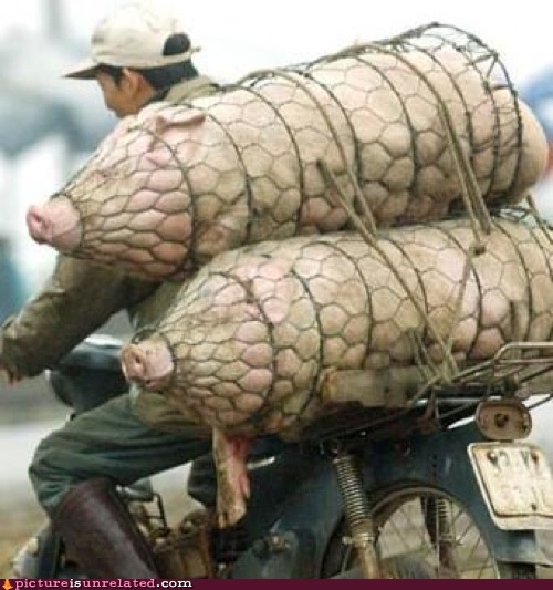 A lot of bacon on that bike