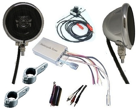 Attachment 38913 Ultra Premium Chrome 4" Amplified Speaker sytem, with Polk SPeaker upgrade 800 Watt 4-Channel Marine Amp w/ external USB-2 charger Rotary Dial Handlebar mount Volume control Ground Loop Isolator - removes noise caused when charging and listening to device at same time. |