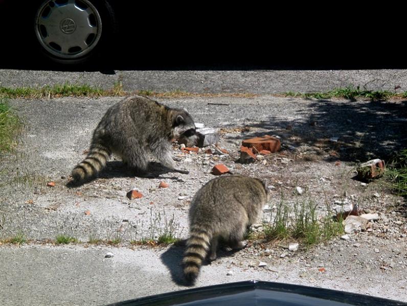 Attachment 47840 Meanwhile, I found these two rascals in my driveway the other day. They were checking out something interesting in a pile of weeds and grass I'd recently dug up. Either that or the one on the left is taking a dump in my rosebed. Attachment 47841 Then, they moved away from the car, not a care in the world, enjoying the sunny day. Attachment 47842 There was some discussion in the middle of the street, Attachment 47843 Which was resolved as they decided to go check out the backyard of my neighbor across the street. |