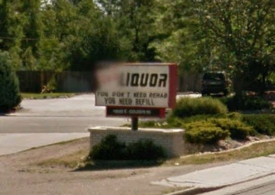 This place has a history of sign humor: From GoogleEarth StreetView: Attachment 54946 "You don't need rehab, you need refill" From GoogleMaps StreetView: Attachment 54947 GoogleMaps link |
