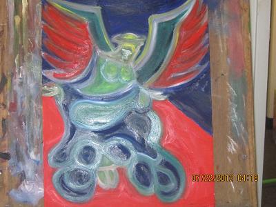 Jb, you've let the canvas limit your art. Those wings would be ok flowing off of the canvas. as it is, the angel looks to be trapped in a box.