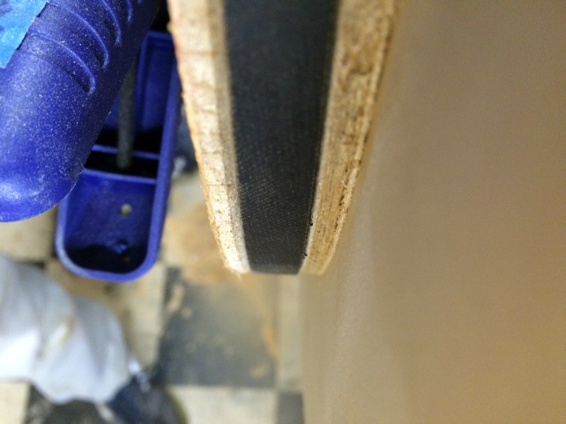 It’s a Wednesday, but in an unprecedented move, the DC Metro system decided to give me a day off. Thanks, guys! I’m getting better at the amount of glue I use. I’m still deliberately using too much, but at least it’s not ridiculous any more. Here, I’m working on what will be the other wheel. I used layers of quarter inch birch plywood for this one. I don’t remember where this plywood came from, but it’s cleaner looking. I think I was more careful with the glue this time so I could keep the pretty wood pretty. Attachment 55818 Saturday 3/19/16 I double checked the plans, and my wheel blanks aren’t thick enough. So I glue another quarter inch of plywood to each one. Attachment 55819 Thursday 3/24/16 It’s spring break, and I’m back from college tours with the family. I use a handheld saber saw to cut a rough wheel for the bandsaw. I cut it slightly oversized so I can fine tune it later on its axis. Attachment 55820 There’s sawdust blocking the view, but check out that edge. Gluing these thin sheets of plywood really resulted in a nice end product. These wheels will be nice. Attachment 55821 |