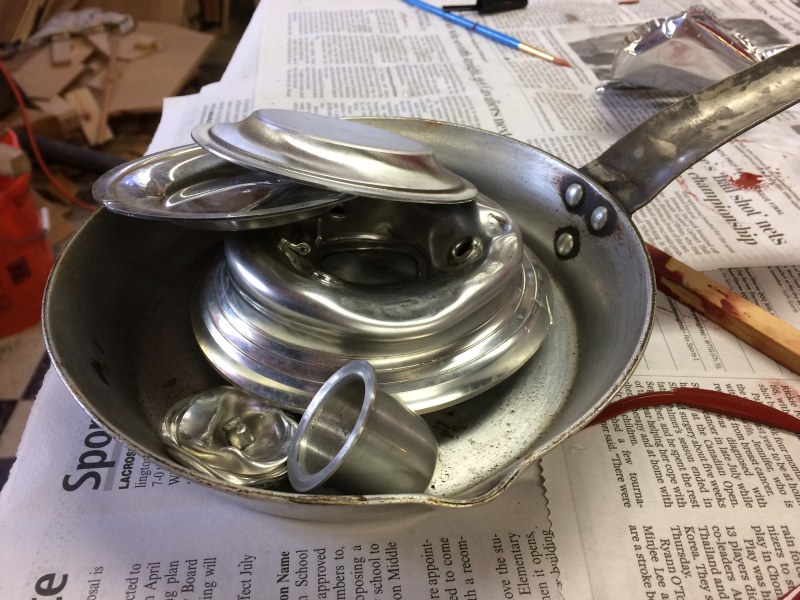 I wanted to give it another try. The rubber mold is still in great shape, so I melted some more pewter.