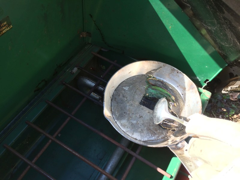 Attachment 59554 I blow the excess out with canned air so an even film remains. Attachment 59555 The fuel tank on the camp stove needs to be pumped up. Attachment 59556 With the flame going, it's beginning to melt. Attachment 59557 |