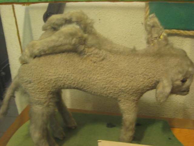 Stuffed sheep with extra legs.