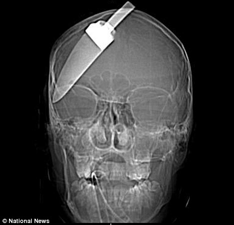 Here are photos of a soldier who survived being stabbed in the head with a 9 inch knife.