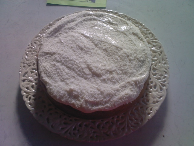 My cake tastes nice, but it falls apart a bit when it's cut. The consistancy is right, but I think next time I'll use pineapple juice instead of crushed pineapple. It's the fibres of the pineapple that're making it crumble when it's cut. Maybe I need a sharper knife. lol