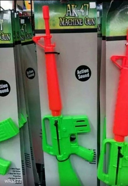 Not what the thread is about, really, but... That's not an AK-47. It's not even a toy AK-47. Attachment 49454 It ain't no machine gun, neither. |