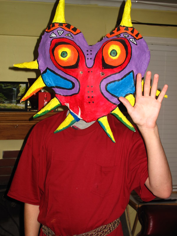 SonofV and I both love costumes. We enthusiastically celebrate Halloween, we have a great time going all out for SakuraCon, we just like dressing up, it's fun! This year for Halloween SonofV wanted to wear the mask from a Legend of Zelda game, Majora's Mask. I was happy to hear his enthusiasm and I told him I'd help him, with the emphasis on help. We started in August, and barely completed it in time for Halloween. That's much more about our pace of work than it is about the degree of difficulty.