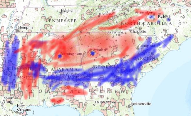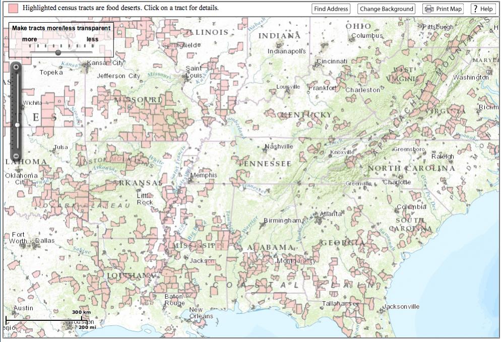 For instance, which food maps show the "rings of white flight republicans surrounding southern democratic cities" or the "predominantly african-american areas"? I'm having trouble seeing this. By looking at the zoomed-in cities, it appears that the food deserts are in rural, or outlying areas. I can understand that, because where I live it takes 30 minutes to drive to a grocery store. |