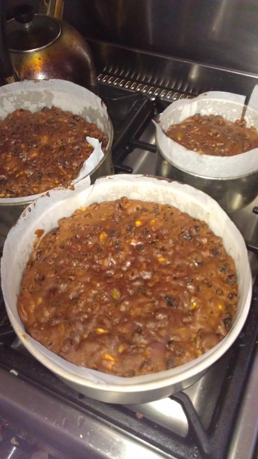 The only candied fruit i use is ginger and cherries. The rest is rum soaked dried fruit. Also, almonds, walnuts and pistachios. I think this years cakes are going to be yummy. After baking, i sprinkled them with lychee liqueur. Now they are bundled up for a few days till i get my decorating supplies.