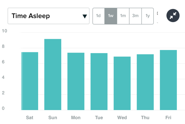 It's a digital watch that also tracks your steps, your sleep, your elevation gain, acts as a silent vibrating alarm clock on your wrist, and gives caller id for your cell phone. The most interesting thing to me is the sleep tracking feature. I've always felt like I slept poorly. I fall asleep easily but feel like I toss and turn all night. I'm constantly waking up, rolling over, and falling back asleep. Sometime my pillow case comes clean off by morning time because I'm moving around so much. Now I have a couple weeks of data that confirm this feeling. These are screenshots off my phone, which is bluetooth synched to my watch. Total hours of sleep each night for a week. This actually looks pretty good. Could be much worse. Attachment 50113 But when we look at how many time I wake up during the night or am restless, the picture becomes a little more grim. Attachment 50112 Friday actually looks not so bad, but I gave the device to my wife to wear, so I could see what another person looks like as they sleep. |