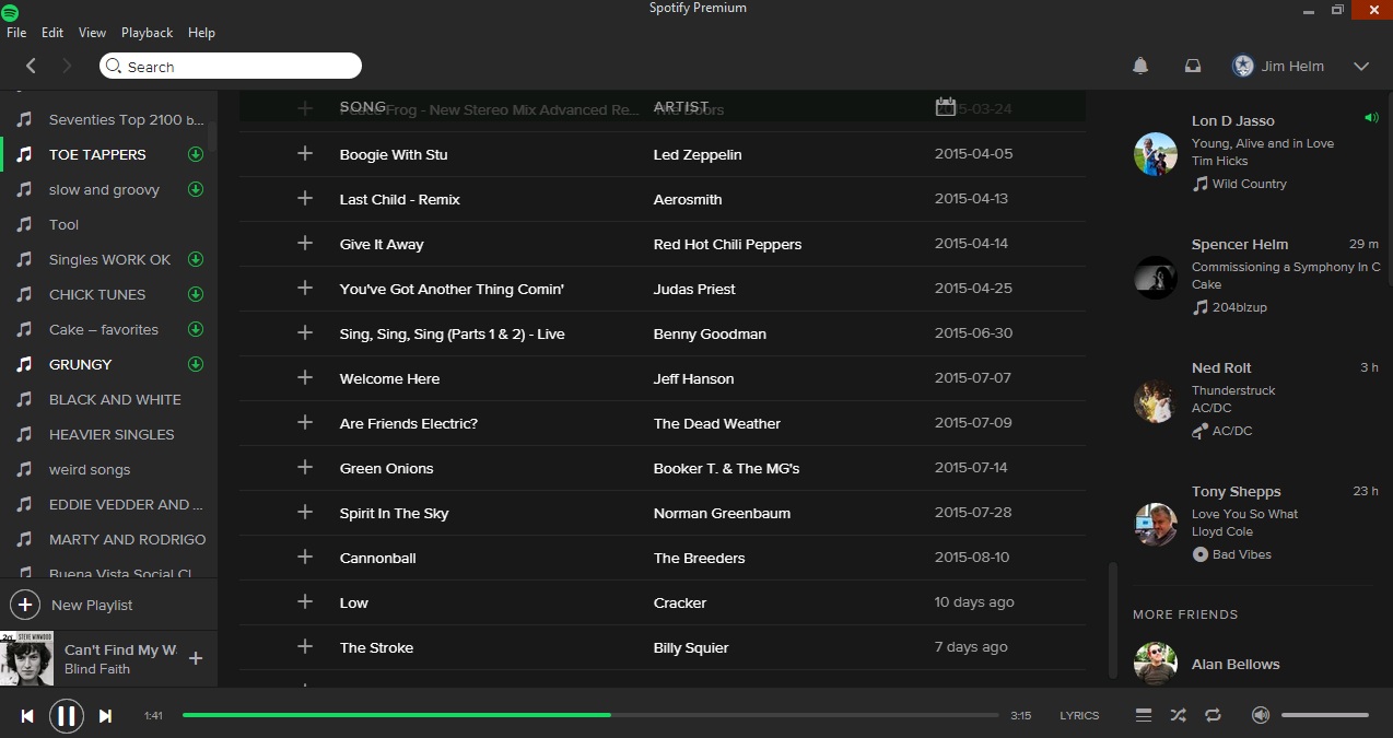 Attachment 53145 You were listening to Toe Tappers, because you're a musician in a rhythm section, and it's got all the good up tempo stuff. Slow and Groovy has more subdued tracks, and Chick Tunes is self explanatory. Weird songs has shit like Miserlou and Primus and Brand new Key... I have classical and Latin lists too for coffin dodgers and beaners. |