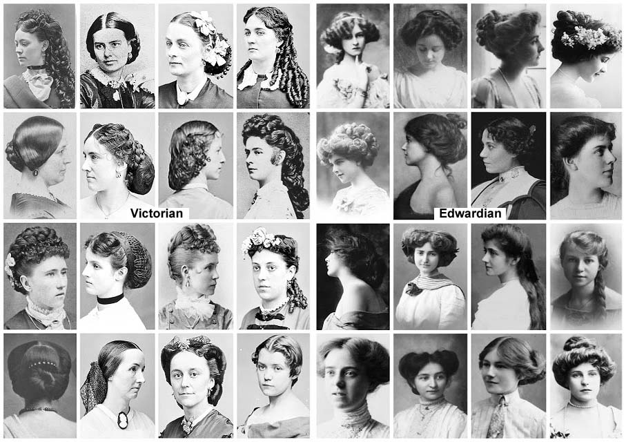 I'd probably get a haircut if I was having trouble getting my hearing aids in and out, or trim the mustache when it started stealing my yogurt, but that's about it. But ladies were always embarrassed by old pictures on their badges at work when the hairstyle was ten or fifteen years out of style. The guard in the badge room said he had a handful who would lose their badge every time they changed hairstyle. He could tell by the picture on file and the regularity of loss. Anyway, these pictures show the Victorian gave way to the softer, poofier, Edwardian styles.