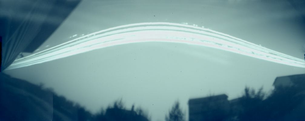 I am still sorting things out in the darkroom, today was somewhat successful. I'm still getting everything "dialed–in" as they say. Even though I've been doing this sort of thing since 1972, this is an entirely new set up and I seem to have unpacked some gremlins along with the rest of the gear. Anyway, I have all your originals stored safely for the time being. Some of you want high res. files emailed. That is not really a problem, but I have dial up (56k) so before I say "ya sure ya betcha" tell me how high is high? I can also toodle on down the block and scan these at my friend's place who has broad band. Let me know what kind of file, jpeg, tiff what ever. If you want to have the original back I can tone and fix it for you. The process will wipe out any faint detail, but will give better separation in the sun trails. The image will also be a negative and reversed. It will probably be the end of may before I can get to this. Finally, we are still waiting to see the results from Jinx and LJ. I have a sinking feeling that there are a bunch of geraniums planted in the cans.