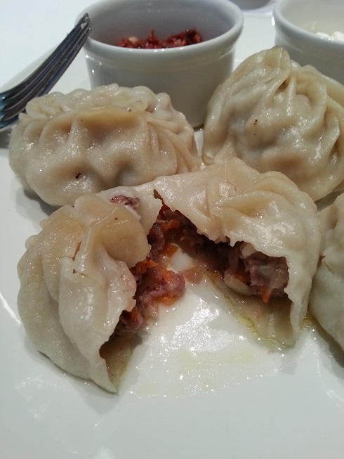 Tonight's dinner was 'Meat in Kazakh style'. Thin slices of what appeared to be roast beef on a bed of soft pasta sheets, the whole drowned in tasty bouillon and garnished with very finely sliced onion and chopped syboes. And a glass of very passable local red wine. Yum! Sent by thought transference