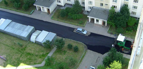 OK, I understand: The guy didn't want to get his tires dirty, so he spread out a mat under his car. Yup.