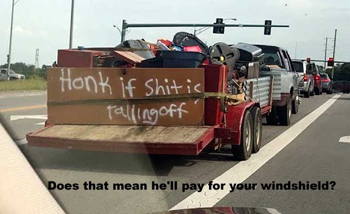 I transported two 4x8 sheets of OSB yesterday on top of my Golf. I was really worried I might lose the load - - I asked Twil to follow me home from the store, just in *that* case.. Slow roads (25 mph) the whole way. Home safely! |