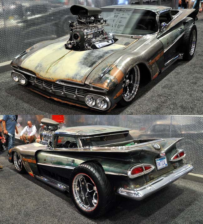 Usually it started with a motor that would run and go from there so they had minimum pieces and light weight. Later they became projects for clubs or a group of friends to chip in pieces and put one together, those often becoming a race only car. They looked like shit but beat walking and better for getting laid than a skateboard. Now Rat Rods is an established style and I don’t understand the attraction. :headshake At the SEMA show going on in Vegas this week there are scores of guys who took a $30,000 engine, dropped it in a custom built high tech chassis, then added the ugliest body they could drag home, with a $10,000 interior. I guess for some people it’s better to be laughed at than ignored. |